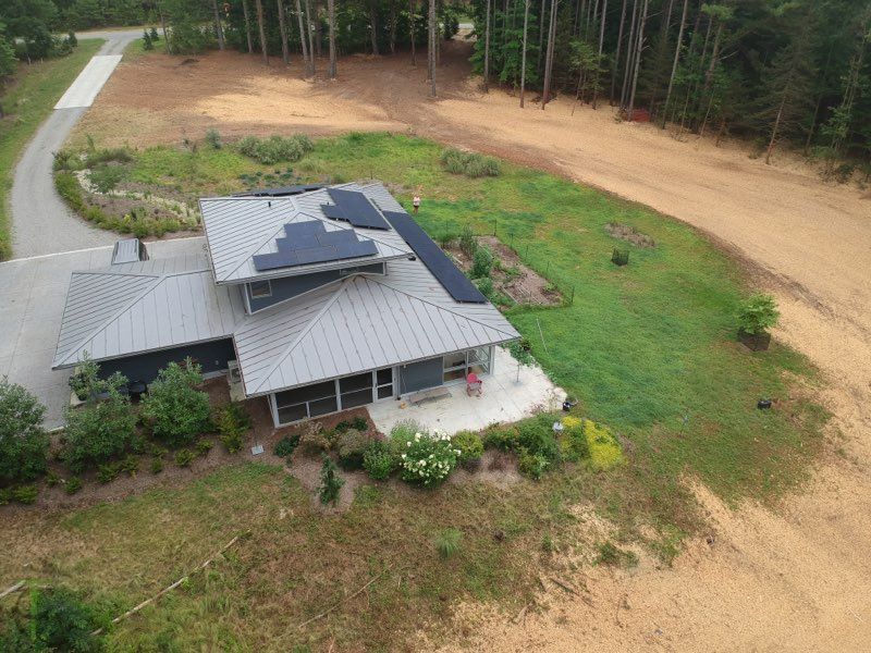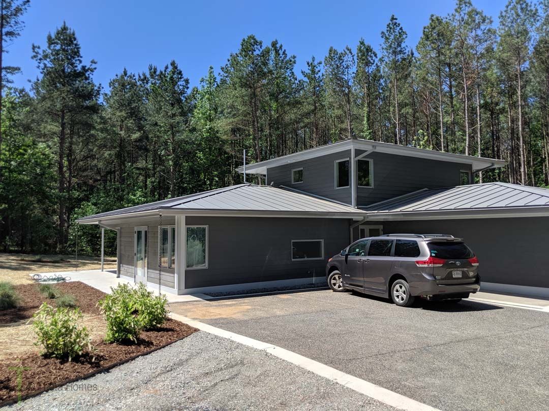 Award-winning ADA compliant custom home in Richmond VA. HERS score 41 before solar, -8 after — generating more energy than it consumes. Built by Theta Homes, 2019.