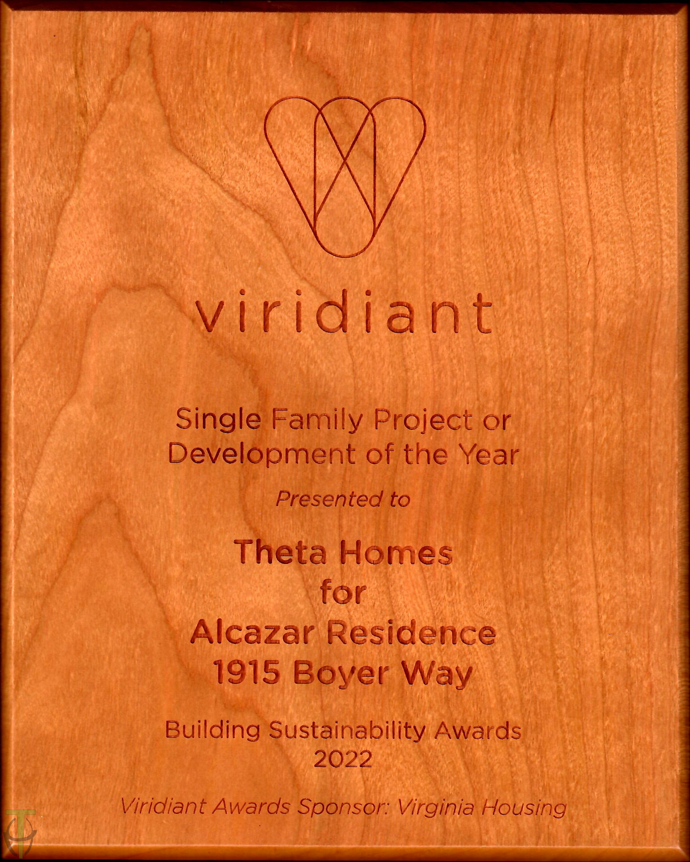 In recognition of its exceptional energy performance and design quality, the Alcazar Home was awarded the 2022 Building Sustainability Award for Single Family Project of the Year by Viridiant.
